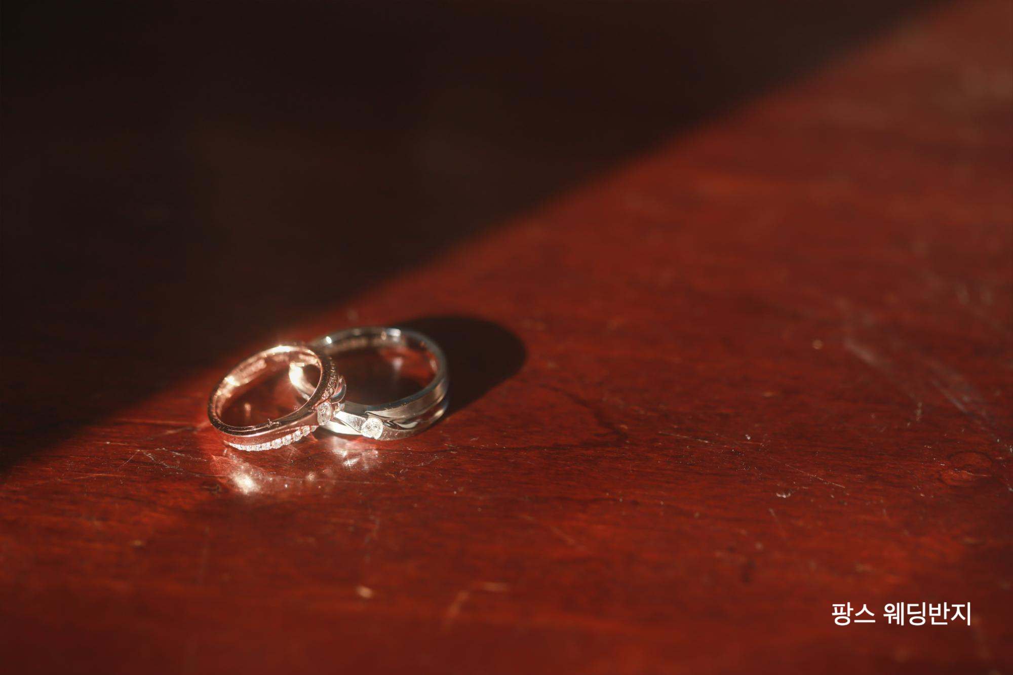 웨딩사진을 찍을 때 사진작가님께 부탁하여 반지를 찍어주실 수 없냐 부탁하였다.
